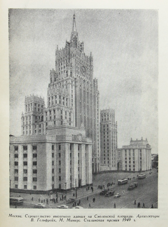 После Великой Отечественной войны в связи с дальнейшими работами по реконструкции столицы и сооружением в ней высотных зданий, а также массовым строительством жилых домов в 8-14 этажей перед советской архитектурой встали важнейшие творческие проблемы. Развитие массового жилищного строительства в стране требовало усиления творческих поисков архитекторов, неустанного совершенствования удобных и экономичных типов жилищ, сочетания передовой строительной техники с высокой художественной формой домов. Высотное и многоэтажное строительство Москвы стало всесоюзной творческой лабораторией, в которой вырабатывались новые методы строительной техники, новые художественные формы архитектуры.