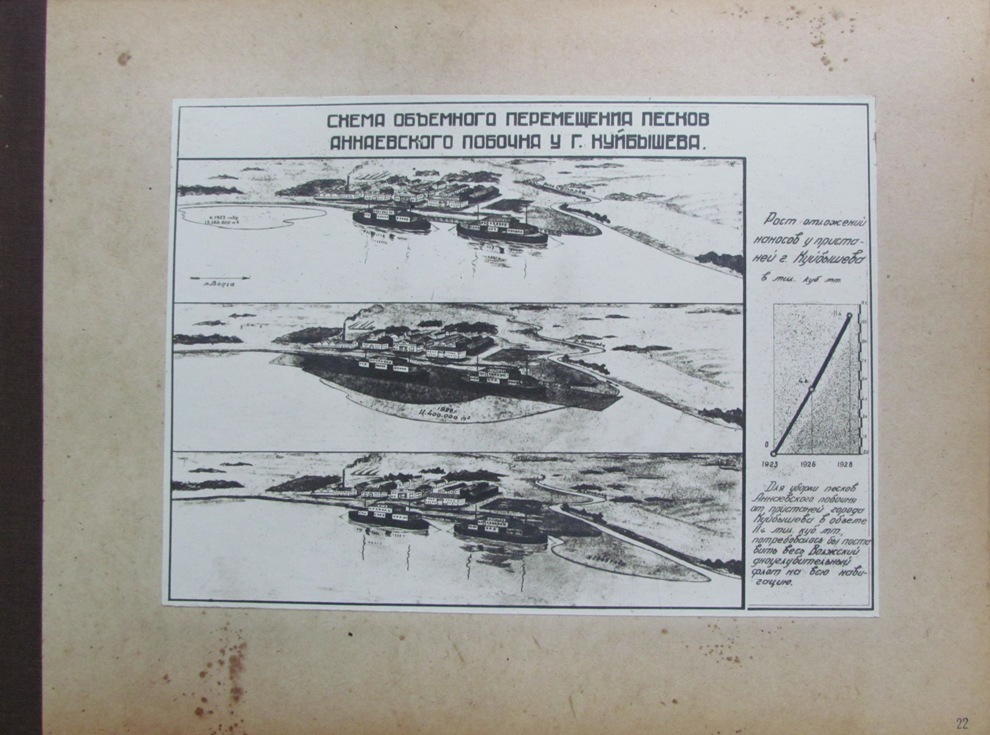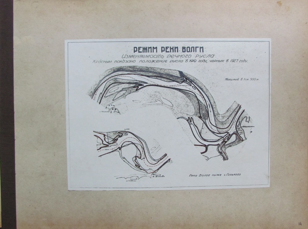 Ведомственное издание, размноженное фотографическим способом в небольшом количестве экземпляров. В нем представлены данные об изменениях Волги как судоходного пути, связанных с природными и антропогенными факторами. Описаны колебания высоты воды, скорости течения, размеров наносов на основных участках пути по течению Волги в зависимости от засушливости года и сезонности, а также других важных факторов. Представлены графики и схемы с анализом статистических данных. Прослеживаются изменения русла, изменения положений перекатов, мелей, движения песчаных наносов, подходов к крупным городам. Рассмотрена история развития путевых работ по расчистке русла и подготовке пристаней. Такие работы проводились еще в 1840-е г.г. Показаны способы расчистки русла до появления землечерпальных машин. Волга – капризная река, в иные годы в некоторых местах она настолько мелела, что движение судов в этом месте становилось невозможным. Представлены методы искусственной регуляции уровня воды и расчистки русла, разработанные к 1940-м г.г. В это время на реке действовал технический флот, занимавшийся расчисткой русла. Рассмотрены методы дноочистительных работ, оборудование и устройство подобных станций. Вводилась программа оперативного сбора сведений о состоянии водного пути, что позволяло быстро начинать работу по расчистке. Отражено влияние путевых работ на судоходство.
