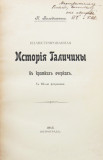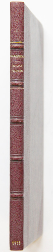 Баладыженко К. Иллюстрированная История Галичины в кратких очерках. С 60-ью рисунками. Пг., [типография Бр. В. и И. Линник], 1915. 99, [4] с., с илл. 23 х 15 см. В современном полукожаном переплете. Сохранена издательская обложка. Отличная сохранность. На титульном листе дарственная надпись: «Многоуважаемому Всеволоду Васильевичу от авторов. П.Г. и К.Ш.».