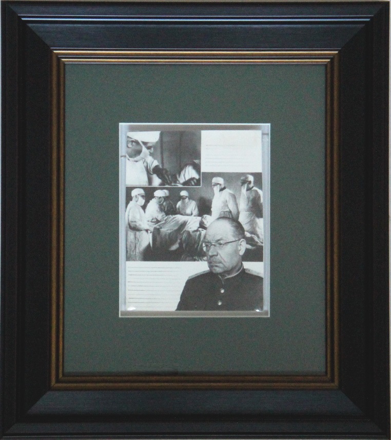 Главный хирург Красной Армии Н.Н.Бурденко. Фото М.С.Редькина. М., 1943. Оригинальная фотография для журнала «Фронтовая иллюстрация», № 13, май 1943 г. В раме. Размер снимка: 15 х 11,5 см. Размер в раме: 37 х 32,5 см. Отличная сохранность.