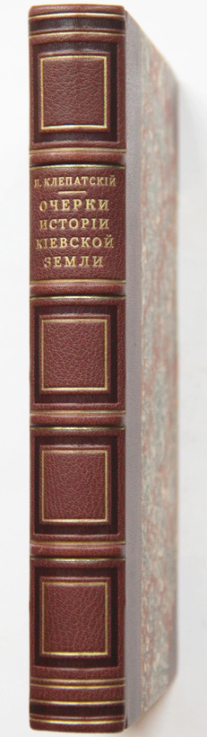 Клепатский П.Г. Очерки по истории Киевской земли. Том I [единственный]: Литовский период. / Записки Историко-филологического факультета Императорского Новороссийского университета, Вып. 5. [Одесса, 1912]. XLIII, 599 c.; 9 л. карт. 23 х 15,8 см. В современном полукожаном переплете. Отличная сохранность. На титульном листе и некоторых страницах владельческий штамп на украинском языке библиотеки М.П. и Е.Ю. Данчевских в г. Нежине.