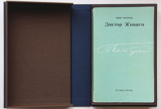 Пастернак Б. Доктор Живаго. Милан, изд. Фельтринелли, [1959]. [4], 566, [4] с. 22,2 х 14 см. Первое «легальное» издание романа на русском языке, прижизненное. В издательской обложке и в современном цельнотканевом художественном футляре с золотым тиснением на передней крышке. Очень хорошая сохранность. Книга была запрещена к распространению в СССР. Редкость.