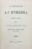 Том первый. С портретом А.С.Пушкина, гравированным художником М.В.Рундальцовым с оригинала, писаннаго В.А.Тропининым. Лирическия стихотворения (1812-1824). [6], VI, 572 с.; 1 л. портр.