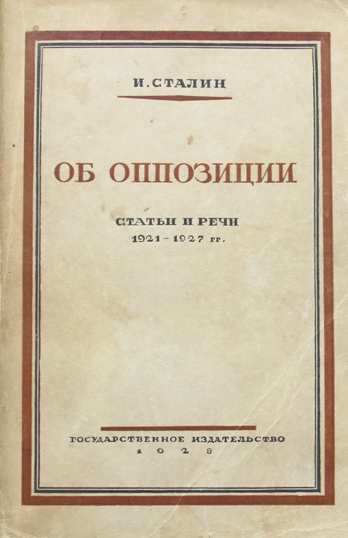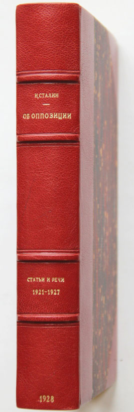 Сталин И. Об оппозиции: Статьи и речи. 1921-1927 г.г. М.-Л.: Государственное издательство, 1928. 750 с. 22,8 х 15 см. В современном полукожаном переплете. Сохранена издательская обложка. Очень хорошая сохранность. На титульном листе владельческая подпись.