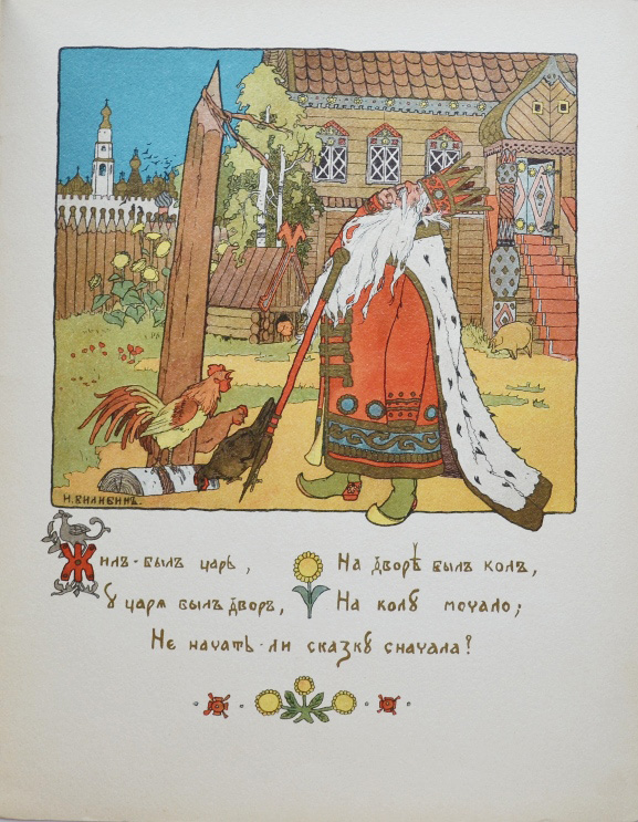 Иван Яковлевич Билибин (1876-1942) - русский живописец и график, театральный художник, один из выдающихся художников-иллюстраторов детской книги, участник объединения «Мир искусства», с 1916 г. – его председатель. Учился в Рисовальной школе Общества поощрения художеств (1895–1898), в школе живописи А.Ажбе в Мюнхене (1898), в мастерской И.Е.Репина в школе М.К.Тенишевой (1898–1900) и в Петербургской академии художеств (1900–1904). В 1907–1917 г.г. преподавал графику в школе Общества поощрения художеств. В 1925–1936 г.г. художник жил и работал в Париже. В 1936 г. вернулся на родину. Преподавал в Институте живописи, скульптуры и архитектуры в Ленинграде. Создал декорации для Театра оперы и балета им. С.М.Кирова и Театра драмы им. А.С.Пушкина. Отказавшись от эвакуации, умер в блокадном Ленинграде.