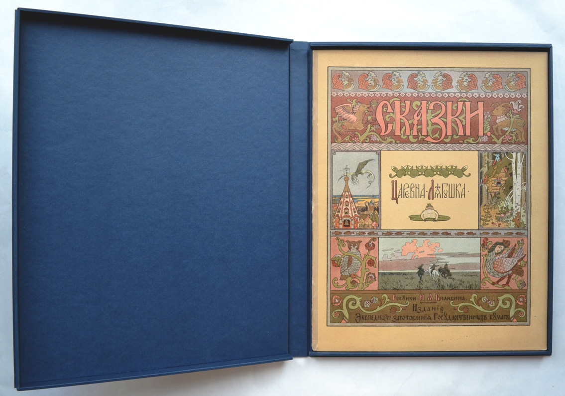 Царевна-Лягушка. Рисунки И.Я.Билибина. [Спб.], издание Экспедиции заготовления Государственных бумаг, [1901]. 10, [2] с., с илл. 32,5 х 25,7 см. В цветной иллюстрированной издательской обложке работы И.Билибина и в современном художественном футляре. Отличная сохранность.