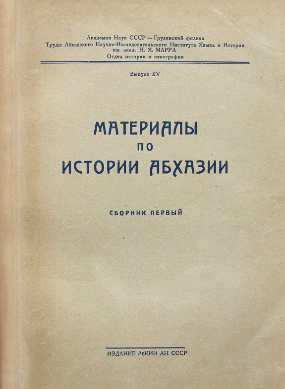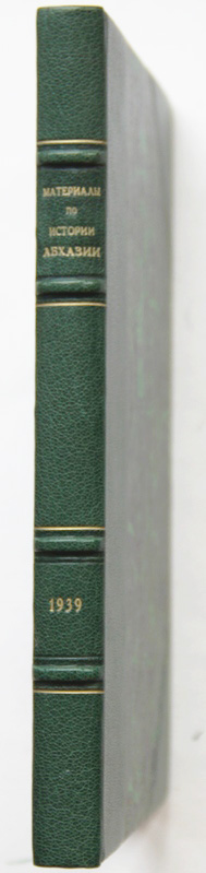 Материалы по истории Абхазии. Сборник первый [единственный]. / Труды Абхазского Научно-Исследовательского Института Языка и Истории им. акад. Н.Я.Марра. Отдел истории и этнографии. Выпуск XV. Сухуми: АбГИЗ, 1939. 148, [6] с.; 12 л. табл. 22,5 х 16,5 см. Тираж 600 экз. В современном полукожаном переплете. Сохранена издательская обложка. Отличная сохранность. Редкость. Профессиональная реставрация обложки.