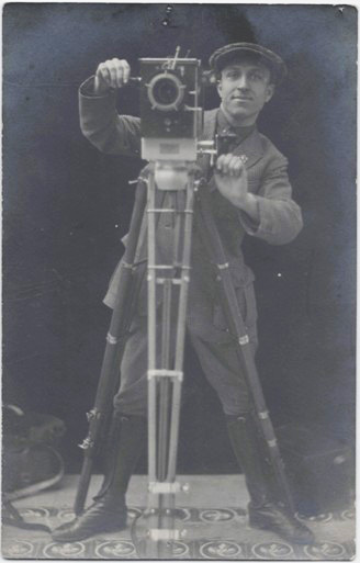 Оператор Совкино Н.А.Струков за киноаппаратом. М., 1926. Оригинальная фотография в современном паспарту и раме. Размер снимка: 14 х 9 см. Размер в раме: 31,5 х 26,5 см. Отличная сохранность. На обороте снимка дарственная надпись: «На память славному артисту, который своим оформлением и образом и искренним смехом заставлял отдыхать и забываться от мишуры жизни. Николай Струков. 22-9-26 Москва».