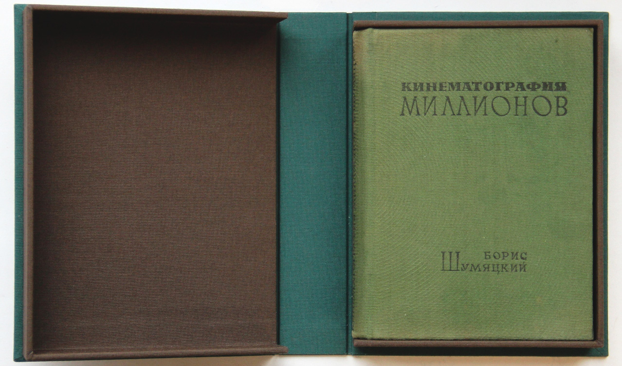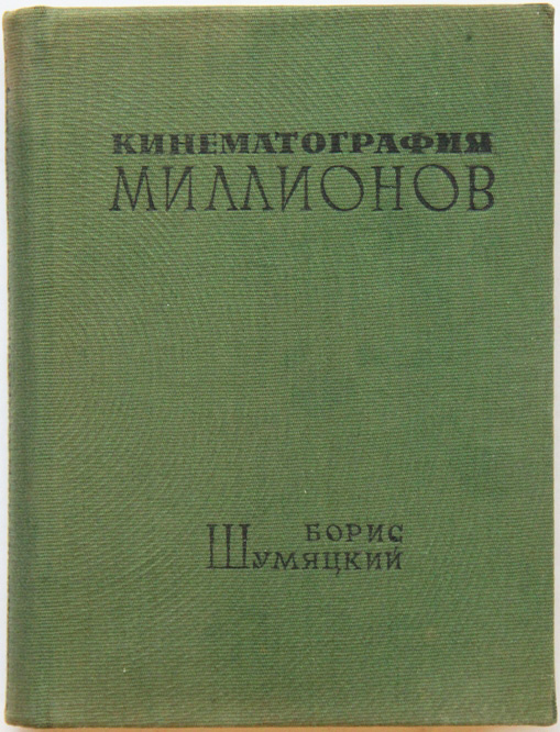 Шумяцкий Б. Кинематография миллионов: Опыт анализа. [М.: Кинофотоиздат, 1935]. 378, [2] с.; 15 л. илл. 17 х 12,5 см. Тираж 7000 экз. В издательском переплете и в современном цельнотканевом футляре. Отличная сохранность.