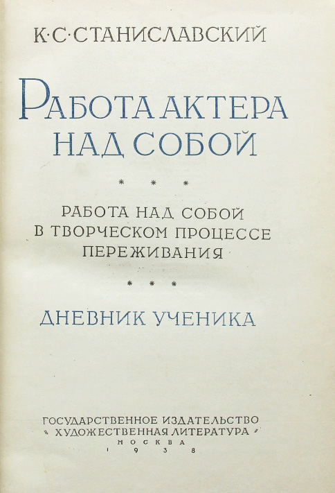 Станиславский К.С. Работа актера над собой: Работа над собой в творческом процессе переживания. - Дневник ученика. М.: Художественная литература, 1938. 576 с.; 1 л. портр. 18,8 х 12,5 см. Первое издание. В современном полукожаном переплете с золотым тиснением на корешке. Отличная сохранность.