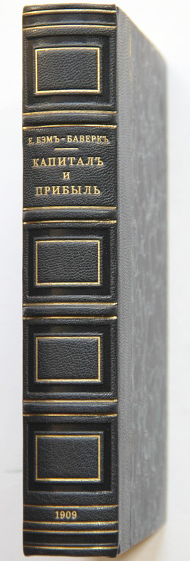 Бэм-Баверк Е. Капитал и прибыль: История и критика теорий процента на капитал. Авторизованный перевод со второго немецкаго издания Л.И.Форберта. Под редакцией и с предисловием М.И.Туган-Барановскаго. Спб., [типография А.Г.Розена], 1909. [2], VIII, [2], 644 с. 20,8 х 15 см. Первое русское издание. В современном полукожаном переплете. Отличная сохранность.
