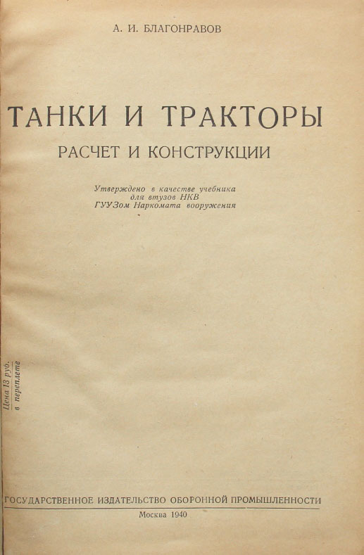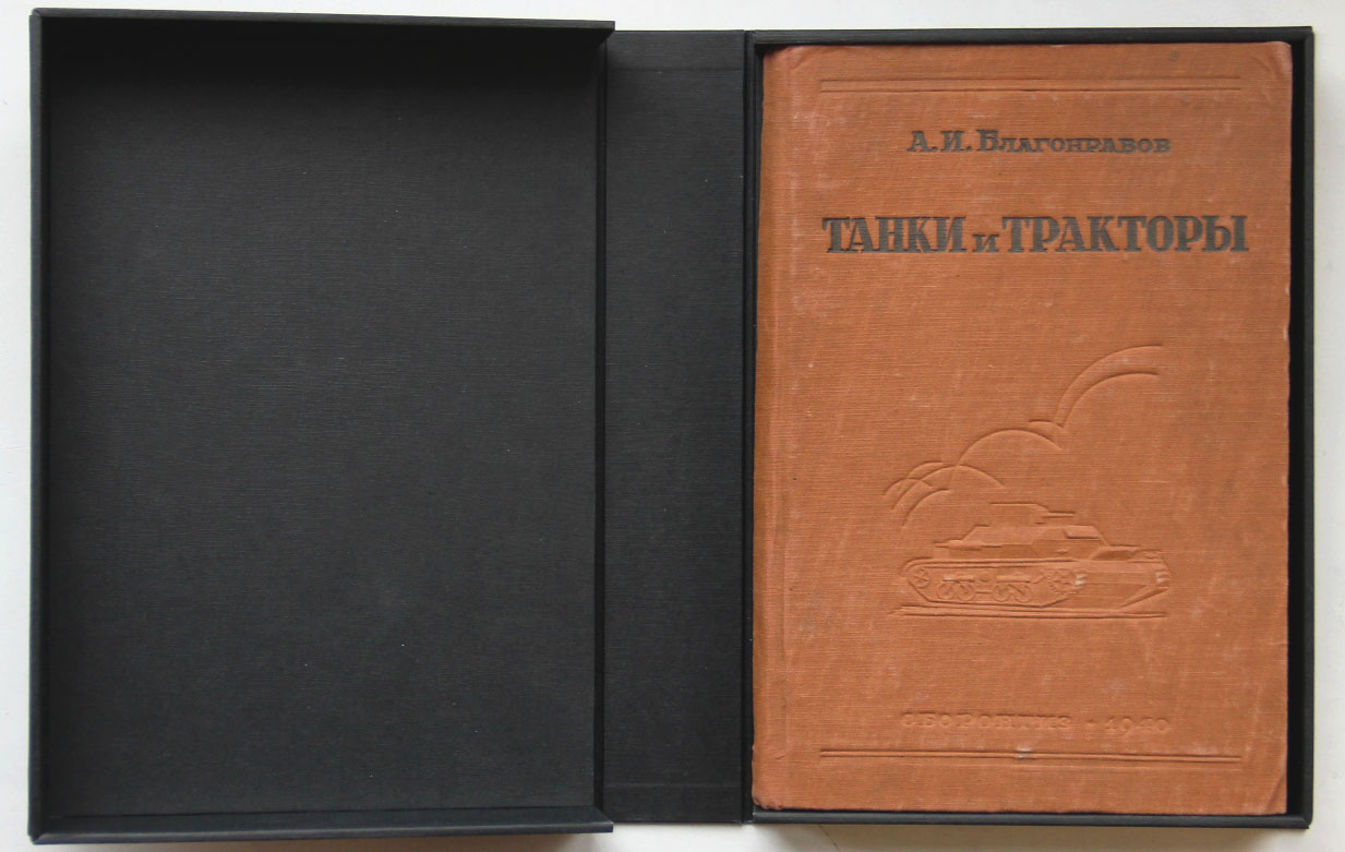 Благонравов А.И. Танки и тракторы: Расчет и конструкции. М.: Государственное издательство оборонной промышленности, 1940. 392 с., с илл. 21,5 х 14,5 см. В издательском переплете и в современном художественном футляре. Хорошая сохранность.