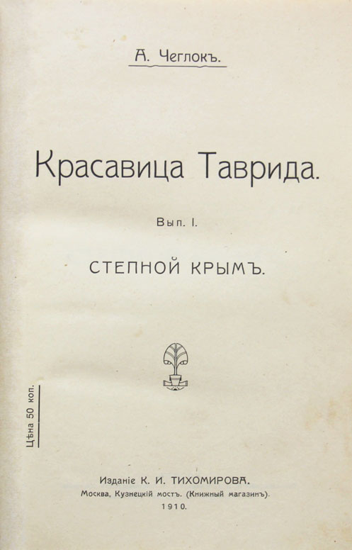 Чеглок А. Красавица Таврида. Вып. 1-3. М., издание К.И.Тихомирова, 1910. 21,3 х 14,5 см. В современном полукожаном переплете. Очень хорошая сохранность.