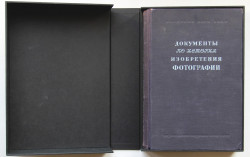 Документы по истории изобретения фотографии: Переписка Ж.Н.Ниепса, Ж.М.Дагерра и других лиц. Редакция и вводная статья члена-корреспондента АН СССР Т.П.Кравца. М.-Л.: издательство Академии наук, 1949. 510 с.; 11 л. илл. 25,3 х 16,5 см. Тираж 3000 экз. Запрещенное издание. В издательском переплете и в современном художественном футляре. Очень хорошая сохранность. Редкость.