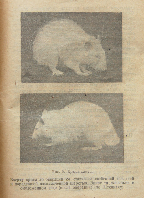 Основное внимание в книге уделено деятельности желез внутренней секреции, активации функций пубертатной железы («железистая ткань с внутренней секрецией») и работы щитовидной железы, воздействию их гормонов как основных факторов старения-омоложения живого организма. Автор приводит примеры омоложения растений, а также животных и человека (мужского и женского пола). Он отмечает, что «выполненные до настоящего времени операции, поскольку мы сейчас интересуемся их омолаживающим влиянием, принесли достаточно доказательств того, что в столь всесторонних и необыкновенных признаках обновления и подъема сил организма имели дело не только с излечением от болезни, но и с настоящим омоложением».