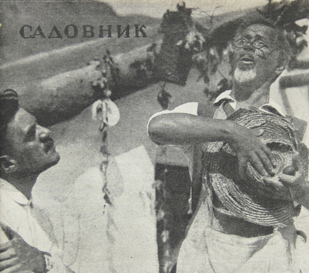 Абидин Дино (1913-1993) - известный турецкий художник, график, кинорежиссер, скульптор. В 1933 г. советский режиссер Сергей Юткевич, снявший фильм об Анкаре, пригласил его на киностудию «Ленфильм», и при поддержке М.К.Ататюрка он приехал в СССР. А.Дино работал художником-постановщиком и ассистентом режиссера на нескольких советских киностудиях, снял фильм «Шахтеры», был художником представленного в настоящем каталоге фильма «Садовник».