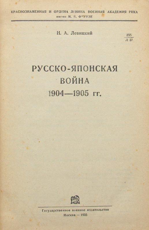 Левицкий Н.А. Русско-японская война 1904-1905 гг. М.: Государственное военное издательство, 1935. 316 с., с илл.; 9 л. карт. 21,5 x 14,5 см. Одно из лучших аналитических описаний боевых действий на сухопутном театре русско-японской войны. Первое издание. В современном полукожаном переплете. Отличная сохранность.