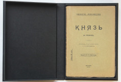 Макиавелли Н. Князь. (Il Principe). Перевод с итальянскаго С.М.Роговина. М., издание Н.Н.Клочкова, 1910. 127 с. 20 х 13,5 см. Издание самого знаменитого трактата Никколо Макиавелли, отпечатанное на бумаге верже. В издательской обложке и в современном художественном футляре. Отличная сохранность.