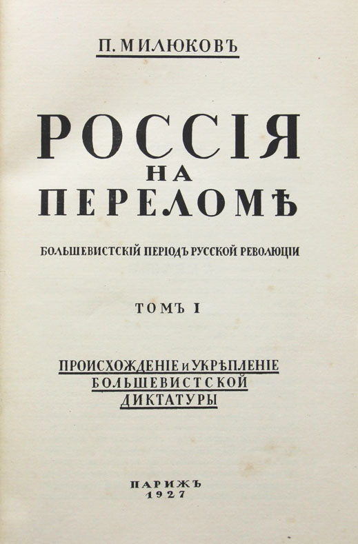 Милюков П. Россия на переломе: Большевистский период русской революции. 2 тома. Париж, 1927. 23 х 15,5 см. Первое издание на русском языке. В современном полукожаном переплете. Отличная сохранность.