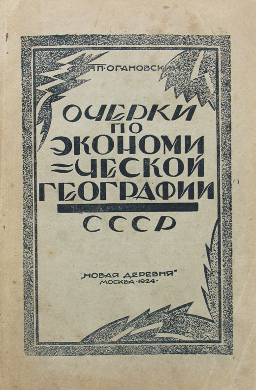 Огановский Н.П. Очерки по экономической географии С.С.С.Р. (в связи с мировым хозяйством, по новейшим статистическим материалам). Издание 2-е переработанное и обновленное. М.: Новая деревня, 1924. [2], VIII, 3-319, II с., с илл. 25,7 х 17 см. В современном полукожаном переплете с золотым тиснением на корешке. Сохранена издательская обложка. Очень хорошая сохранность. На титульном листе владельческая подпись.