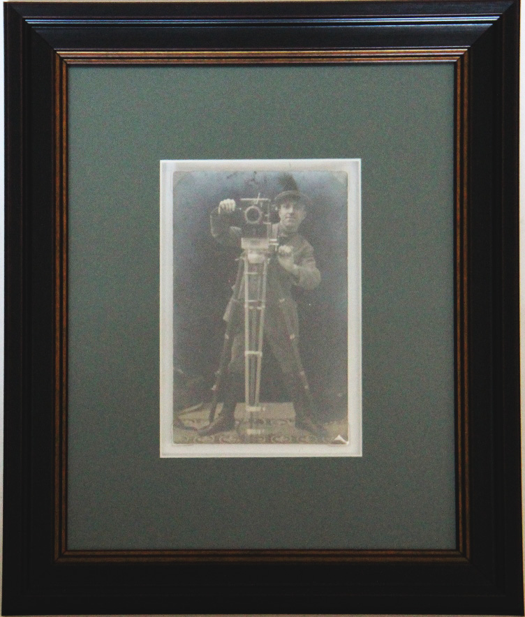 Оператор Совкино Н.А.Струков за киноаппаратом. М., 1926. Оригинальная фотография в современном паспарту и раме. Размер снимка: 14 х 9 см. Размер в раме: 31,5 х 26,5 см. Отличная сохранность. На обороте снимка дарственная надпись: «На память славному артисту, который своим оформлением и образом и искренним смехом заставлял отдыхать и забываться от мишуры жизни. Николай Струков. 22-9-26 Москва».