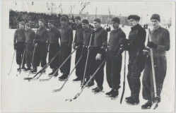 Фотография сделана в Москве на Малом стадионе «Динамо». На обороте снимка перечислены фамилии присутствующих на снимке хоккеистов (справа налево): Н.Поставник, М.Степанов, В.Блинков, О.Толмачев, Н.Медведев, М.Якушин, А.Чернышев, В.Комаров, С.Соловьев, В.Трофимов, Б.Бочарников.