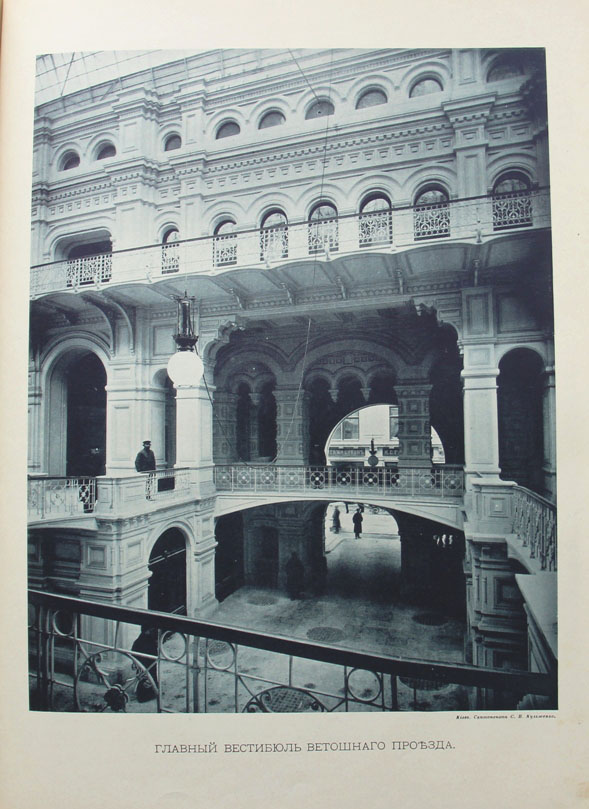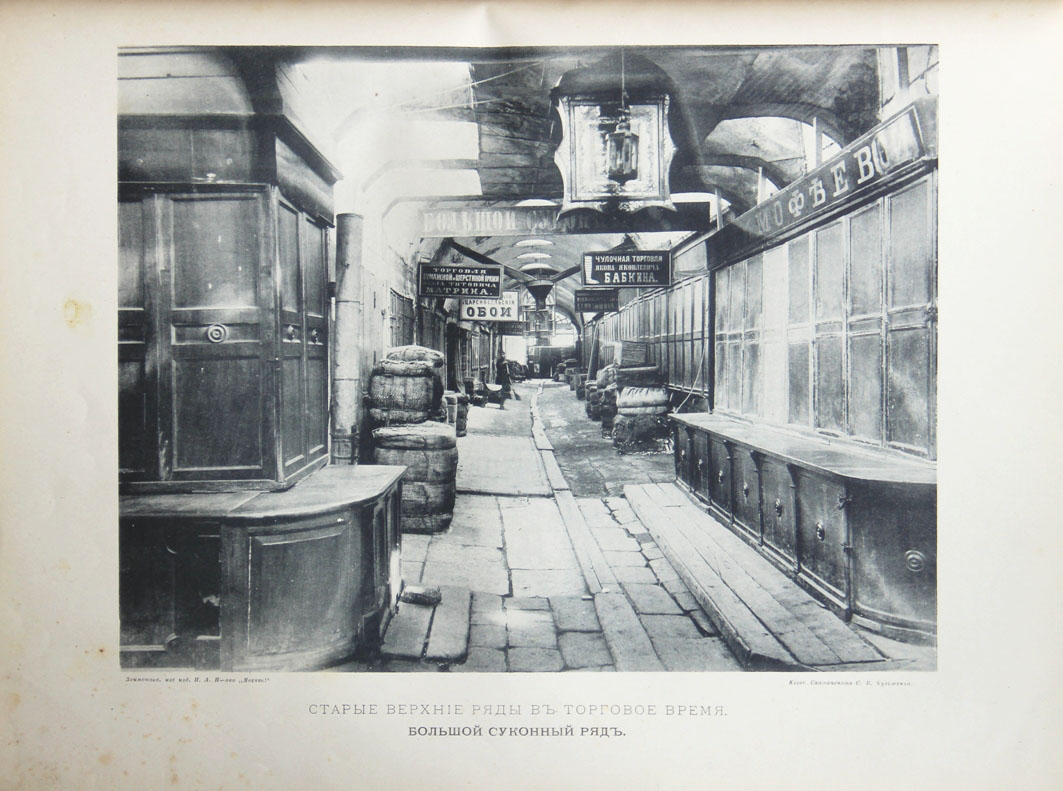 Настоящий исторический очерк был написан сразу по окончании строительства ныне существующих Верхних Торговых Рядов. Он рассказывает об истории торговых рядов на Красной площади в Москве, о проектировании и строительстве нового здания, а также об участниках этого проекта; описывается внешний вид и технологические особенности возведенного сооружения. В издании воспроизведены исторические виды Красной площади, а также снимки, сделанные на месте во время проведения строительных работ.