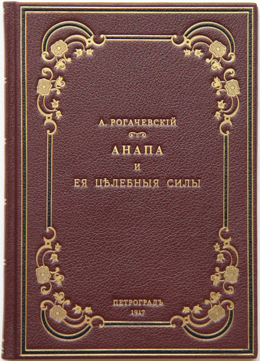 Рогачевский А.Н., д-р. Анапа и ея целебныя силы. Пг., типография Редакции периодических изданий Министерства Финансов, 1917. 57, [2] c.; 1 л. портр.; 2 карты. 19,8 х 14,5 см. В современном цельнокожаном переплете с золотым тиснением на корешке и крышках. Сохранена издательская обложка. Отличная сохранность.