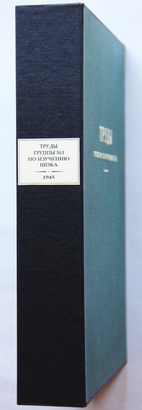 Труды Группы № 1 по изучению шока. Ответственный редактор генерал-лейтенант медицинской службы Н.П.Устинов. Заместитель ответственного редактора генерал-лейтенант медицинской службы заслуженный деятель науки М.Н.Ахутин. Член редакционной коллегии полковник медицинской службы профессор А.М.Геселевич. [Прага], Действующая армия, 1945. 426, [6] с., с илл. 25 х 18 см. Одна из лучших в мировой литературе книг о военно-травматическом шоке. Издана Военно-санитарным управлением Первого Украинского фронта в действующей армии. В издательском переплете и в современном художественном футляре. Очень хорошая сохранность. Редкость. На титульном листе владельческая подпись 1951 г.
