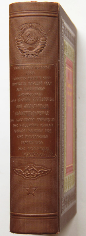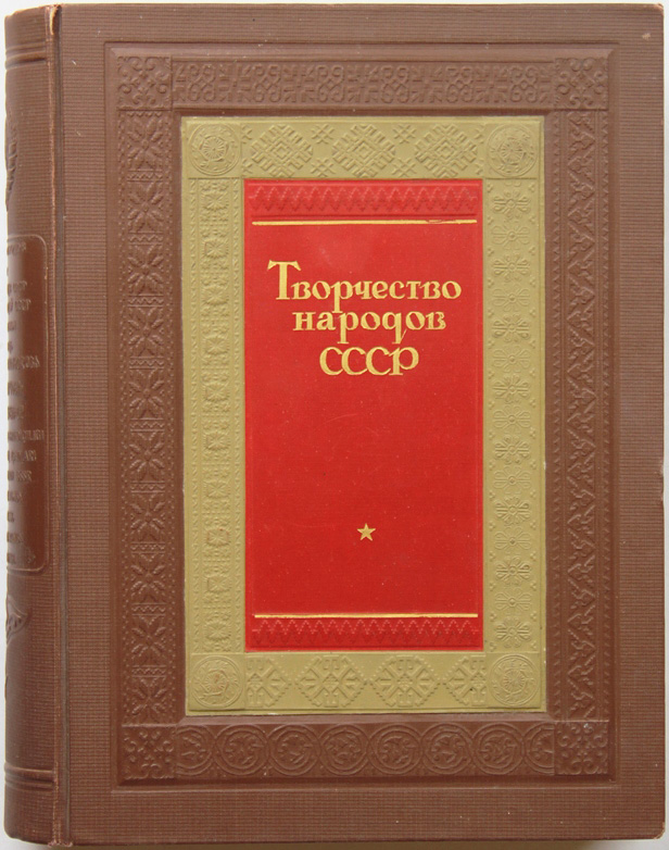 Творчество народов СССР. Под редакцией А.М.Горького, Л.З.Мехлиса, А.И.Стецкого. [М.], издание редакции «Правды», [1937]. XII, 534, [2] с.; 44 л. илл. 27 х 20 см. Юбилейное издание к 20-летию Октябрьской революции. В издательском переплете. Очень хорошая сохранность.