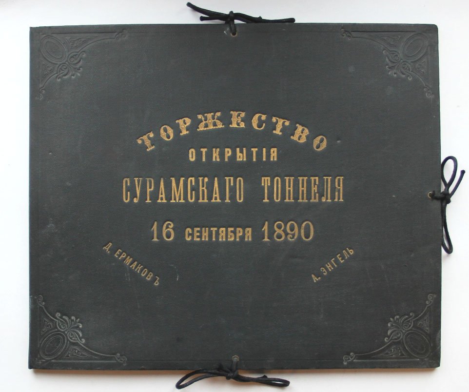 Торжество открытия Сурамскаго тоннеля 16 сентября 1890 года. 10 фотографий А.К.Энгеля и Д.И.Ермакова, наклеенных на паспарту. [Б.м., 1890]. Размер снимков: 20,3 x 25,5 см. Размер в паспарту: 32,2 x 38,9 см. В папке эпохи с золотым тиснением на передней крышке. Очень хорошая сохранность. Редкость.