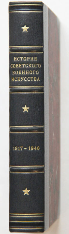 Кадишев А.Б. История советского военного искусства. 1917-1940. Второе дополненное издание. М.: [издательство Военно-политической академии им. В.И.Ленина], 1949. 370, [2] с., с илл.; 14 л. карт. 20 х 14 см. Экз. № 3463. Издание вышло ограниченным тиражом, не предназначалось для продажи, все экземпляры были пронумерованы и распространялись среди слушателей Военно-политической академии им. В.И.Ленина. В современном полукожаном переплете с золотым тиснением на корешке. Сохранена издательская обложка. Хорошая сохранность. На передней обложке и титульном листе владельческая подпись, аккуратные читательские пометы карандашом в тексте.