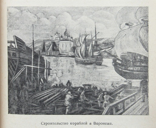 В 1930-е г.г. краеведение в СССР находилось в упадке, так как считалось, что изучение местной истории способствует развитию национализма. Но в начале 1940-х г.г. такая тематика уже становится возможной, особенно в силу значимости Воронежа как места зарождения русского флота. Автор книги Елена Васильевна Калинина (1883 - не ранее 1942) сочетала в себе профессию историка, талант писателя, и сама была родом из Воронежа. Она получила образование на рубеже двух эпох, окончив в 1921 г. Институт истории искусств в Петрограде. Была ученицей Б.В.Формаковского и Д.В.Айналова, стала научным сотрудником Института истории искусств и Публичной библиотеки Ленинграда, что открыло ей доступ к богатым историческим материалам, в том числе и архивным, на которых основаны ее книги. Она неоднократно принимала участие в экспедициях по древнерусским городам. Своему родному региону писательница посвятила две книги - «Грозный Дон» (1931) и «История города Воронежа» (1941).