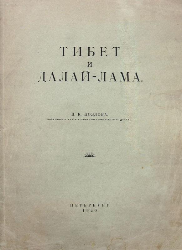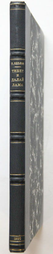 Козлов П.К. Тибет и Далай-Лама. Пб., [15-ая Государственная типография], 1920. 100 с.; с илл. в тексте и 9 илл. на отдельных листах. 28,7 х 21 см. В современном полукожаном переплете. Сохранена издательская обложка. Очень хорошая сохранность. Профессиональная реставрация обложки. На титульном листе автограф автора: «Милой Ванде Ивановне от всего сердца, Искренно-преданный автор. 8/VI 1921 Москва».