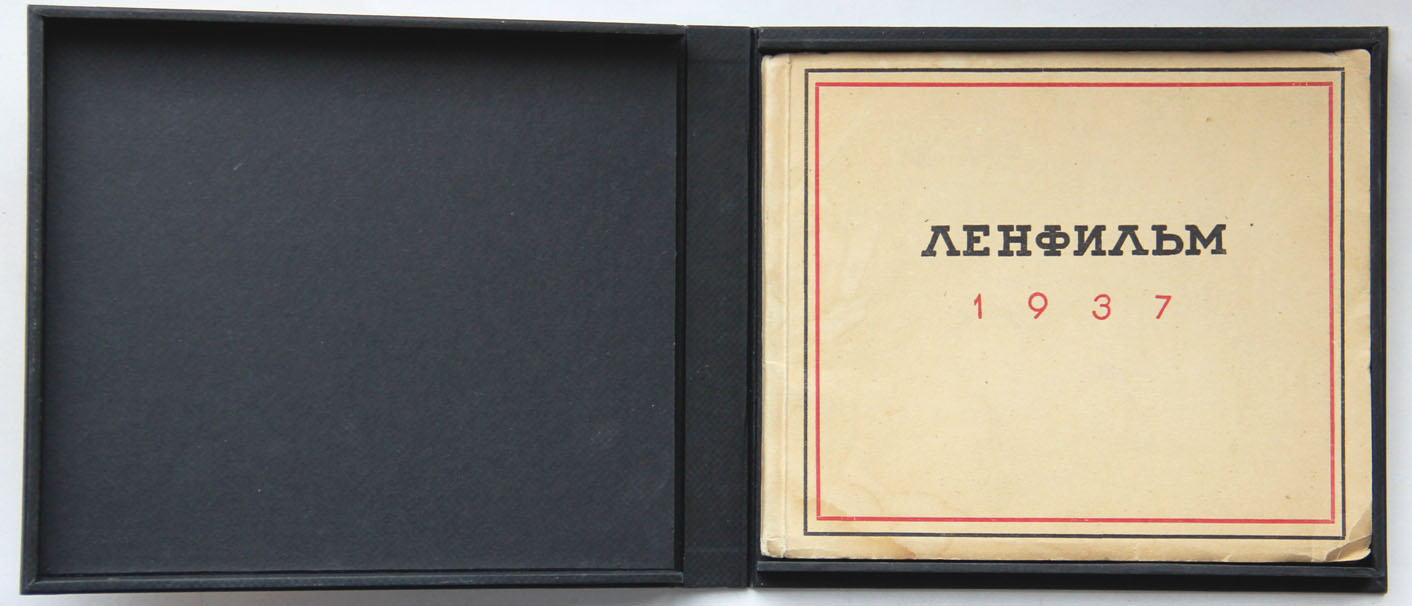 Ленфильм в 1937. Л., [изд. киностудии «Ленфильм», 1937]. 82, [2] с., с илл. 14,5 х 17 см. Тираж 4200 экз. В издательской обложке и в современном художественном футляре. Оформление издания Абидина Дино. Очень хорошая сохранность.