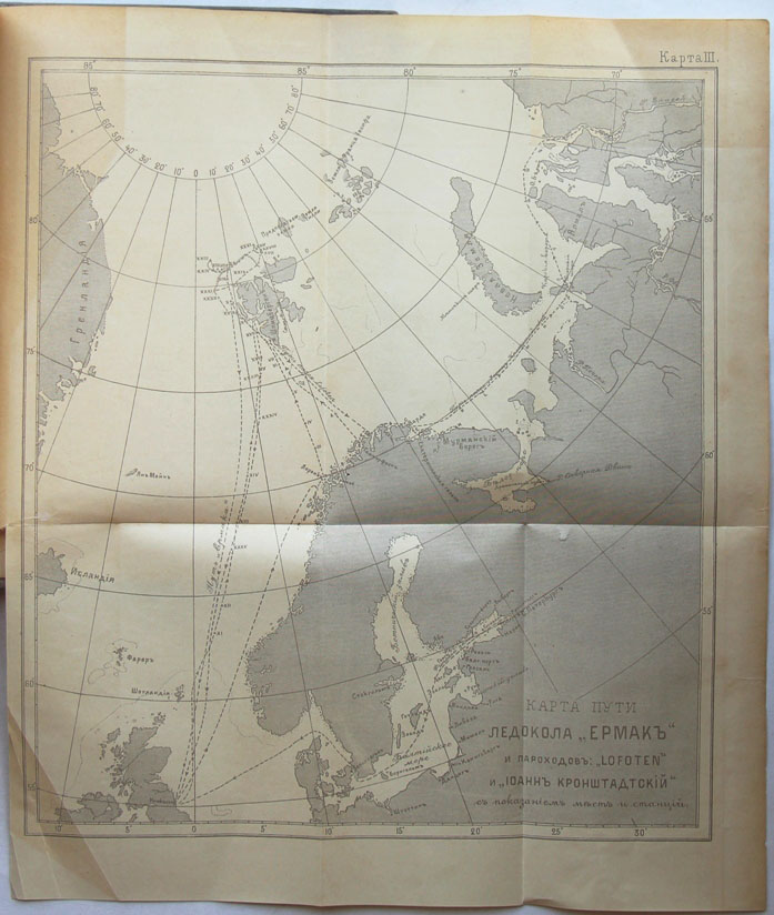 Макаров С.О. «Ермак» во льдах: Описание постройки и плаваний ледокола «Ермак» и свод научных материалов, собранных в плавании. В 2 частях. С 152 рисунками, чертежами и картинами в тексте и на отдельных страницах и с 5 картами. Спб., типография Спб. акц. общества печатнаго дела в России Е.Евдокимов, 1901. [4], XXII, [2], 507 с.; с илл. в тексте и 25 илл. на отдельных листах; 5 л. карт. 26,2 х 18 см. В иллюстрированном издательском переплете и в современном художественном футляре. Очень хорошая сохранность.