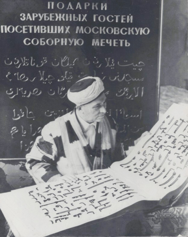 Ахметзян Мустафин (1902-1986) - известный мусульманский духовный лидер России, в 1964-1986 г.г. - имам-хатыб Московской Соборной мечети. Родился в семье потомственных имамов татарского села Шубино Нижегородской области. Начальное религиозное образование получил у отца, который на протяжении 30 лет был настоятелем мечети этого села. В 1914-1921 г.г. обучался в новометодном медресе Мухаммадия в Казани, после окончания которого вернулся в родное село и стал преподавать в школе при мечети. В 1925 г. поступил на учебу в небольшое медресе известного богослова Хамидуллы Альмушева и в 1928 г. получил от него письменное разрешение на право самостоятельного религиозного наставничества. В 1930 г. в связи с развернувшейся коллективизацией и репрессиями на религиозных деятелей уехал в Казань. Здесь он совмещал работу в различных, не связанных с религиозным служением сферах с учебой в вечерней школе. Получив в 1939 г. аттестат о среднем образовании, поступил на географический факультет Казанского университета, однако оставил учебу и в том же году переехал в Москву. Здесь он совмещал работу на различных предприятиях с проведением религиозных обрядов и проповедей в домах мусульман и на кладбищах. Своим духовным служением А.Мустафин завоевал большой авторитет и уважение в общине, в том числе и в среде официального духовенства. В середине 1950-х г.г. он познакомился с председателем Духовного управления мусульман Европейской части СССР и Сибири (ДУМЕС) муфтием Ш.Хиялетдиновым, который способствовал его назначению в 1956 г. 2-м имамом Московской Соборной мечети.