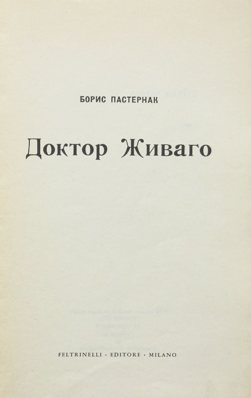 В ноябре 1957 г. роман был впервые издан на итальянском языке в Милане, за что Д.Фельтринелли был позднее исключен из компартии. 24 августа 1958 г. в Голландии тиражом 500 экземпляров было выпущено «пиратское» (без согласования с Д.Фельтринелли) издание «Доктора Живаго» на русском языке. В издательстве Д.Фельтринелли издание на русском языке вышло в свет в Милане в январе 1959 г. За два года после первой публикации роман был переведен на 24 языка.