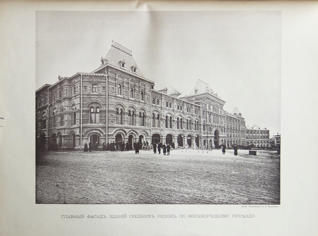 Торговые ряды были торжественно открыты в 1894 г. Они представляют собой выдающееся сооружение среди торговых помещений не только России, но и Западной Европы. Ряды были выстроены архитектором А.Н.Померанцевым в стиле русских построек XVII столетия. По словам известного историка И.Е.Забелина, архитектурные формы вновь возведенных Торговых рядов - это «не простой произвольный набор и подбор форм и мотивов русских сооружений, но весьма обдуманная и, можно сказать, прочувствованная их группировка, что дает право считать их одними из лучших сооружений этого рода и вполне достойными занимать место на богатой историческими воспоминаниями Московской Красной площади».