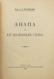 В этой работе автор дает краткий историко-географический очерк Анапы, рассказывает об условиях жизни в ней. Представлены рекомендации, касающихся приема морских, воздушных, песочных, солнечных и грязевых ванн, лечения виноградным соком, кефиром, медом. Перечисляя показания к лечению больных в Анапе, А.Н.Рогачевский особенно выделяет туберкулез костей, суставов и желез, приводит статистические данные о распространении его в России и о высокой смертности от него, в то же время отмечая, что в Анапе это заболевание прекрасно лечится.