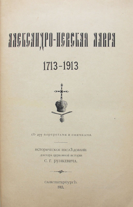 В 1913 г. Александро-Невская Лавра торжественно отмечала свой 200-летний юбилей. К этой знаменательной дате вышло в свет написанное известным церковным историком С.Г.Рункевичем фундаментальное исследование «Александро-Невская Лавра. 1713-1913». Этот ученый труд по истории обители подвел итог всем исследованиям и описаниям Александро-Невского монастыря.