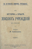 Слобожанин М. Из истории и опыта земских учреждений в России. Спб., издание журнала «Жизнь для всех», 1913. XII, 551 c. 18 х 12 см. Книга впоследствии не переиздавалась. В современном полукожаном переплете. Сохранена издательская обложка. Очень хорошая сохранность. На некоторых страницах дореволюционный владельческий штамп-экслибрис.